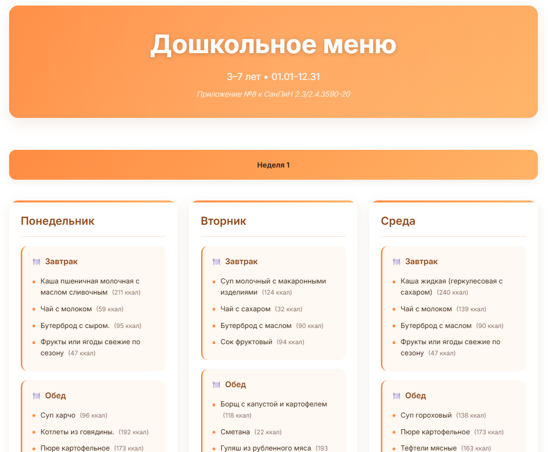 Обновление меню на ноябрь для дошкольников и школьников